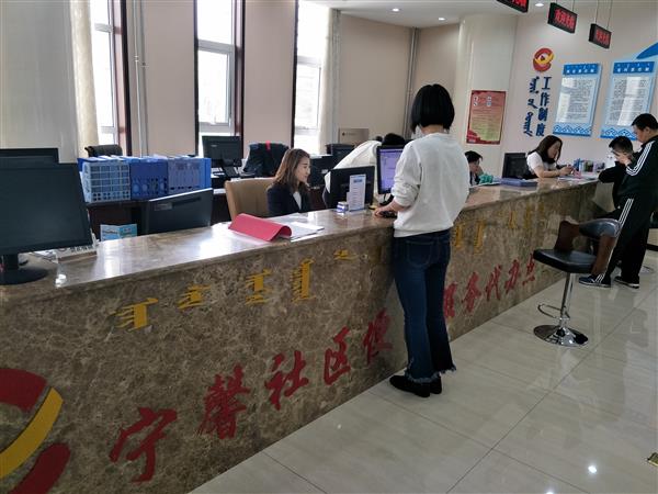 寧馨社區(qū)服務(wù)網(wǎng)點(diǎn)窗口服務(wù)人員辦理業(yè)務(wù)