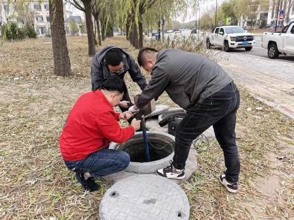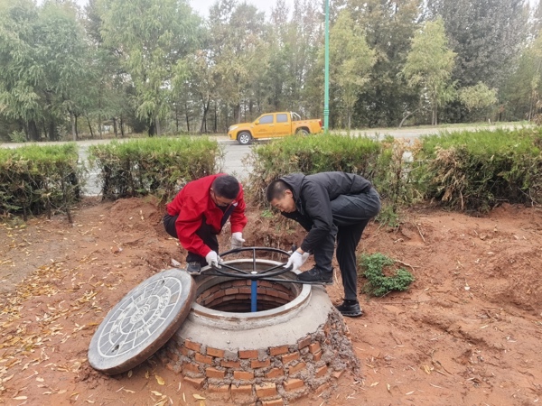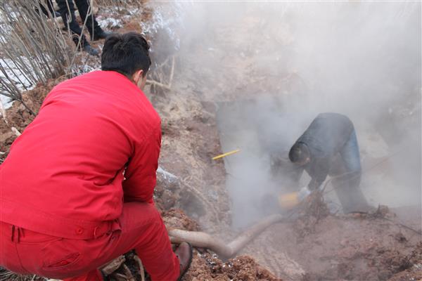 工作人員搶修管網(wǎng)漏點(diǎn)