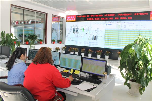 熱力分公司工作人員中控室實(shí)時(shí)監(jiān)控?cái)?shù)據(jù)