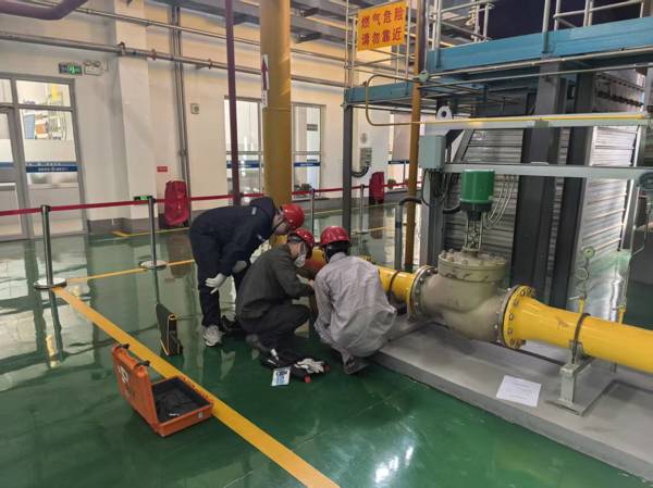 熱力公司工作人員對(duì)燃?xì)忮仩t進(jìn)行管道檢測(cè)
