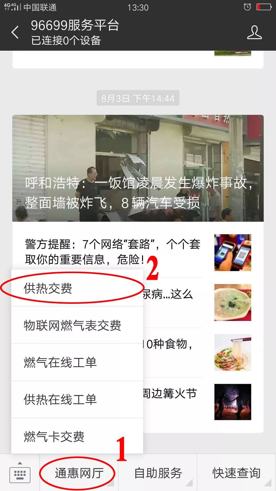 第二步,點擊通惠網(wǎng)廳,點供熱交費