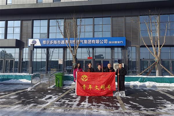 營(yíng)銷服務(wù)分公司組織工作人員清掃營(yíng)業(yè)廳門前積雪,為用戶提供安全暢通道路